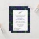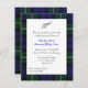 O convite tradicional para o janto do ensaio de casamento da xadrez de tartã escocesa, feito com o adorável tartan azul e verde do clã Forbes. Uma área de texto de cor branca, no meio, tem um tom de prata exibido no topo. O texto está preto e azul e é totalmente personalizável para atender às suas necessidades de casamento. Personalize o texto para atender às suas necessidades.