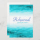 Belo mar azul pintado com ondas gráficas e convite de janto de ensaio de casamento. Edite este convite com suas palavras. Simples, mas moderno, e estilo oceânico, convidam. Design e trabalho de arte por Sarah Trett.