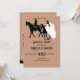 Janto de ensaio Convite design com uma noiva e cavalaria nesta elegante carta temática ocidental.