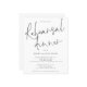 Um valor para o alternativo do ORÇAMENTO em tamanho menor de 4,5 x 5,6" de semirbrilho de 110 lbs, que é de espessura semelhante a um cartão postal (no entanto, não é adequado para uso como cartão postal). POR FAVOR, OBSERVE QUE HÁ UM convite por folha mostrada em preto e branco clássico. Este design moderno tem elegante roteiro informal para ensaiar Dinnere e o resto da tipografia que você pode personalizar facilmente. Você também pode alterar as cores do texto e do plano de fundo em ambos os lados, se desejar através da opção Personalizar mais.