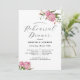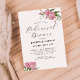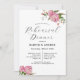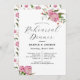 Elegante convite de janto de ensaio de casamento que inclui a ilustração aquosa de flores cor rosa de pénia rosa com verde. Perfeito para o seu primavera ou casamento de verão.