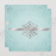 Adorável convite de janto de ensaio de Casamento no inverno feito em uma cor damasco azul aqua como fundo. Uma área de texto branco tem flocos de neve bonito em dois cantos, cinzas escuras e texto aqua. Personalize todo o texto do seu evento especial.