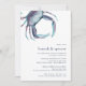 O convite para janto de ensaio técnico costeiro apresenta uma ilustração de caranguejo azul-aquarela estilo vintage, com os detalhes do janto de ensaio em azul-marinho clássico. Perfeito para praia, verão, ou ensaios e celebrações náuticas, esses convites de estilo costeiro invertem para o azul de porto sólido. Inclui espaço para o ensaio de cerimônia e para o janto ou celebração a seguir.