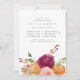 Simples e elegante convites para janto de ensaio floral apresentam o ensaio de cerimônia de casamento e detalhes de celebração em cinzas chicas, com um conjunto vibrante de coloração d'água abarrotada no outono e verde ao longo do fundo.