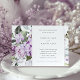 Esse convite de janto de ensaio captura a essência da elegância com sua borda luxuosa de flores lilás e folhagem verde-salva. O design floral apresenta um espectro de púrpuras, desde lavanda suave até violeta rica, colocado contra um pano de fundo de variadas matizes verdes e uma canvas branca nítida. O convite amplia um pedido sincero numa fonte sofisticada, com todos os detalhes do evento expostos em roteiro claro e gracioso. Ela estabelece a palco de uma noite memorável antes do dia especial, combinando a beleza da natureza com a antecipação de uma celebração alegre.