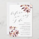 O convite à janta de ensaio elegante para a Rússia apresenta uma inscrição castanha escura em ameixa escura em blocos quicos e itálicos com acentos caligráficos, com pulverizações de folhagem em cascata nos cantos em tons ricos de colheita de outono de ameixa roxa e ouro.