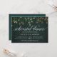 Nosso elegante janto de ensaio ou convites de festas de coquetel em verde-chic e ouro apresentam um fundo verde-caçador escuro com cordas de folhas falsas de ouro no topo, e "janto de ensaio" em tipografia de roteiro de caligrafia. Personalize com seu ensaio de cerimônia e ensaie detalhes de janto abaixo. Inclui espaço para a época do ensaio e endereço da igreja ou do local.