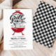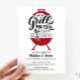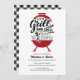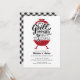 Envie aos convidados este convite de Janto de ensaio "Grill and Chill" moderno e divertido para um biscoito ou festa de noivado casual! O design apresenta uma ilustração de grelhador clássica com tipografia personalizada para enfatizar a celebração do casal feliz! A parte de trás do convite inclui gingham preto com caixa de verificação com espaço para adicionar mais informações.