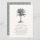 O convite de janto ao estilo da praia de Vintage apresenta uma ilustração gravada da palmeira em verde-caçador negro, no topo dos detalhes do seu casamento em cinzas de carvão para um olhar de costeira chic. Cartões de convite de marfim esbranquiçados invertidos a um padrão tecido. Recomendamos a impressão desse estilo no papel Tradicional Laid para uma textura rica que complementa a aparência antiga desse convite de janto de ensaio.