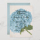 Convite de janto de ensaio de casamento personalizado, feito em um marfim antigo, com gráficos de uma grande hidrangea azul. O texto preto é totalmente personalizável e pronto para personalizar o seu evento.