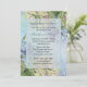 Elegante convite de festas de janto pré-casamento honrando a Noiva e o Horto de Estar com belos design de Hydrangea em tons de cor d'água de lavanda clara, azul e branco com pingos de verde. A parte traseira da placa repete este design em tons silenciosos. Personalize o convite do janto de ensaio com os nomes noivo e noivo e adicione a hora, data e local, bem como informações de contato RSVP. Tema de correspondência disponível em outros produtos na minha loja.