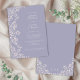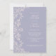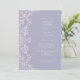 Coloque a palco para uma noite de ensaio de casamento com este elegante convite de janto para o tema lilás francês. Os tons de lavanda roxa e cor-de-rosa são perfeitos para um casamento vintage romântico de dinheiro ou um casamento floral. Personalize os detalhes e adicione a noiva e o monograma do noivo no verso. Projetado pelo Simple Desert Design Studio. Mande-nos uma cor personalizada que corresponda ao seu tema de casamento.