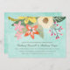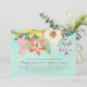 Design floral de aquarela em laranja coral, pinks, marfim, amarelo e verde sobre um fundo de cor aqua. Fácil de personalizar! Russo, na moda, colorido - perfeito para a sua ocasião especial!