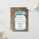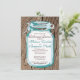 O Janto de ensaio Rustic Country Mason Jar Convoca um design de jarro de sotaque azul-lacrimogêneo sobre um fundo de grãos de madeira notoriedade. O design de madeira nojenta também está no dorso em cor de cheio, junto com um pequeno pote de pedreiro no canto que diz "Amor". Basta adicionar seus próprios detalhes de janto de ensaio a este modelo.