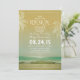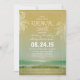 Palmeiras, Janto de Ensaios do Mar de Ondas de Praia Convite. Bonito elegante e simples com fontes manuscritas e fundo de papel antigo com paisagem sazonal.