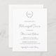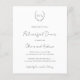 O convite jantado tradicional e clássico de preto e branco para ensaio de orçamento apresenta uma crista de casamento com o seu dentro de monograma de coroa, juntamente com palavras de sotaque em uma escrita / caligrafia. Este simples mas elegante convite é excelente de um janta formal de ensaio.