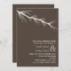 Um simples convite de janto de ensaio de casamento, com uma ilustração de uma tosse de pínus no topo. Personalize o texto na parte inferior direita. Fundo castanho.