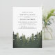 Uma escolha rústica para jantadas de ensaio em regiões montanhosas, florestais ou invernais, nosso convite para janto de ensaio de Tall Pines apresenta uma borda inferior de árvores verdes e altas silhuetadas em tons ricos de verde caçador. Adicione seus detalhes de janto de ensaio usando os campos fornecidos, em cinzas de carvão profundo.