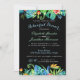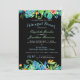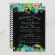 Este janto de ensaio tropical colorido é perfeito para o casal que vai ter um casamento de praia havaiana, um casamento de praia na Flórida, ou um casamento de praia Caribe. Imagens em aquarela de hibisco, folhas exóticas, pássaros do paraíso, florais tropicais, abacaxis e palmeiras sobre fundo negro que dão a volta ao cartão. Este convite apresenta azul, verde, rosa, laranja, amarelo e vermelho. A cor do padrão do canal lateral pode ser personalizada de acordo com sua preferência. Texto totalmente personalizável. Veja minha coleção completa de "Casamento Floral Tropical" para mais itens que você precisará para seu casamento exótico!