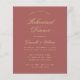 Um simples convite de janto de ensaio com uma cor moderna: a rosa de canela. Ele tem apenas ouro texto amarelo sobre fundo rosa de canela. As palavras "Janto de ensaio" e o nome são escritos num guião caligráfico elegante.