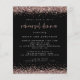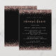 Um valor para o alternativo do ORÇAMENTO em tamanho menor de 4,5 x 5,6" de semirbrilho de 110 lbs, que é de espessura semelhante a um cartão postal (no entanto, não é adequado para uso como cartão postal). POR FAVOR, OBSERVE QUE HÁ UM convite por folha. Janto de Ensaio de Rosa do Orçamento para o Lixo Negro Convide. Bordas no topo e no fundo de cada lado, em rosa dourado, brilhando. O Janto de ensaio é definido num estilo moderno de escrita manual. Personalize facilmente o resto do texto para você.
