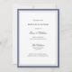 Convite para janto de ensaio clássico. Escrito tradicional elegante em cinzas escuras dentro de uma dupla borda azul. Volta azul. Para ajustar o layout, clique em Personalizado, Editar Texto e, em seguida, clique em e arraste seções de texto para os locais desejados. Use Cntrl para selecionar e mover várias seções ao mesmo tempo.