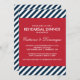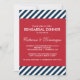 Chás de casamento de Stripes Náuticas Azuis Escuras Convite Um moderno convite para chás de casamento vermelho, branco e azul. Ele tem um fundo padrão de faixas de diagonal branco e azul e um quadro vermelho. Este convite de festas é perfeito para os partidos náuticos e oceânicos.
