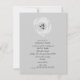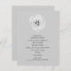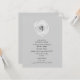 Um convite de ensaio moderno, que janta uma cinza de fundo, à frente e atrás. A frente apresenta uma ilustração de uma tulipa branca e parte superior. Texto é cinza escura.