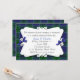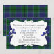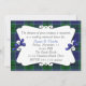 Um convite de janto do ensaio de casamento de xadrez tartana. Uma área de texto decorativo branco senta sobre o fundo de xadrez de clã Scott azul e verde. Doce arcos azuis decoram os dois lados da área de texto. Personalize o texto de acordo com as necessidades do seu partido.