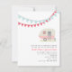 Um convite de janto de ensaio de casamento com uma ilustração de um trailer cor-de-rosa com um cheio de janelas com flores coloridas. Camas vermelhas e azuis no topo. Personalize o texto.