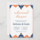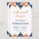 Este incrível convite de Janto de Talavera inspirado no ensaio apresenta medalhões de ornamentados e ousados motivos geométricos em marinhos e terracota. Inclui design opcional. Personalize adicionando seus detalhes usando o modelo ou personalize a fonte, o tamanho, a cor e o posicionamento do texto selecionando a opção "Editar usando a Ferramenta Design".