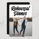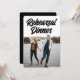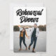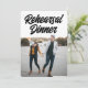 Uma manchete casual cobre sua foto favorita neste convite para janto de ensaio pessoal. Todos os detalhes modernos estão do lado oposto.