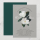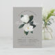 Nosso convite de janto de ensaio Grandiflora apresenta um par de flores brancas magnólias e folhas verdes esmagadoras, com os nomes dos casais sobrepostos em tipografia de guiões brancos com letra de mão. Personalize com seu ensaio de cerimônia e jante ou comemore detalhes em chic off-black em um fundo de cinza.
