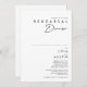 Este janto de ensaio minimalista moderno é perfeito para o seu janto clássico de vovô. Seu design simples, único e abstrato, acompanhado de um roteiro mínimo contemporâneo e de uma paleta de cores brancas e pretas dá a este produto uma sensação de luxo formal elegante enquanto permanece simplista, boêmica. Mantenha-o como está ou escolha personalizá-lo com trabalho de arte ou gráficos de sua escolha. Você também pode procurar outros produtos dentro desta coleção para juntar todo o seu casamento!