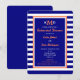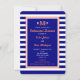 Este convite de janto de ensaio náutico apresenta faixas brancas e azuis marinhos como fundo para o marinho azul borrado em coral e branco no qual são colocados os detalhes do janto de ensaio. O monograma da noiva e do noivo é o ponto focal da design. Você pode personalizar este convite de janto de ensaio com seus detalhes de janto de ensaio de casamento. Direitos autorais