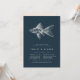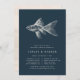 Nossos convites para o janto de ensaio cômico costeiro apresentam uma ilustração de peixe estilo gravado em vintage, em branco, sobre um fundo azul marinho. Personalize com seu ensaio de cerimônia de casamento e jante ou comemore detalhes abaixo.