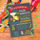Tacos super legal e modernos e Margaritas ensaiam o convite do jantar. Faça uma Fiesta mexicana com tacos, tequilla e margaritas com maracas e tipografia divertida contra um quadro negro. Ilustração desenhada à mão por McBooboo.
