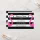 Flores cor-de-rosa divertido sotaque este Janto de ensaio chic Convite a um fundo listrado preto e branco, fazer-o perfeito para um destino, praia, Havaí, Caribe ou casamento tropical. Itens de coordenação podem ser encontrados na coleção de casamentos Trendy Flamingo. Se você precisar de ajuda para personalizar este convite ou precisar de itens adicionais, entre em contato conosco em prettyfancyinvites@gmail.com com sua solicitação.