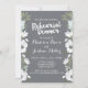 Celebre seu dia especial de casamento com um convite de janto de ensaio sofisticado e chique. Um simples pano de fundo de cinzas com florais brancos alinhando as bordas faz deste convite uma forma excelente de anunciar o seu janto de ensaio à família e aos amigos. Para alterar a cor da fonte e da fonte, clique no botão "Personalizar" abaixo da imagem do produto.