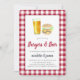 Os convites de janto de ensaio casuais "hambúrgueres & cerveja" apresentam ilustrações de aquarela e uma borda vermelha e branca de gingham. Perfeito para jantas de ensaio no verão ou no exterior, esses convites casuais de chic são facilmente personalizados com seus detalhes de celebração.