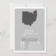 Uma Cinza Elegante e um convite para Janto de ensaio branco, apresentando uma silhueta de cinza em Ohio com coração. A parte de trás do convite tem um design de impressão simples. Se você precisar de qualquer estado Personalizado de alguma forma, sinta-se à vontade para me enviar um e-mail e eu posso mover o coração ou até fazer o estado/coração maior para a maneira que você gostaria, também se houver uma cor de fundo que você prefere que eu não tenho no momento, eu posso personalizá-la especialmente para você. Mintleafinfo@gmail.com