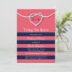 Uma corda à vela amarrada num coração decora este convite de janto de ensaio de corais, fazer-o perfeito para o casamento temático náutico ou praia. Role para baixo para ver o resto da coleção de casamento e, se forem necessários itens adicionais, entre em contato conosco em prettyfancyinvites@gmail.com com sua solicitação