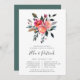 Os convites de janto de ensaio floral elegantes apresentam uma caixa de cor-d-água de flores de pêssego cor-de-rosa e cor-de-pêssego com folhagem botânica verde, que cobre os detalhes do janto de ensaio em letra escura escura. Inclui espaço para o ensaio de cerimônia de casamento e festa ou janto a seguir. Convites invertendo a verde de água sólida.