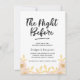 Este convite de janto de ensaio inclui um título de caligrafia em pincel preto e um arranjo floral em ouro falso e cor-de-água rosa. Esse convite de janto de ensaio é ideal para um casal em busca de um design simples. As flores são aquarelas com algumas folhas de textura falsa de ouro e detalhes. O verso do convite apresenta um padrão irregular de bolinhas dourado falso em fundo branco. Este convite de janto de ensaio está pronto para ser personalizado. Para mais designs de janto de ensaio, visite a loja.