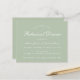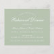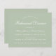 Um convite simples e minimalista à janta de ensaios: apenas um texto branco sobre o fundo verde sage. As palavras "Janto de ensaio" e os nomes são escritos num roteiro caligráfico elegante, o resto em bonés.