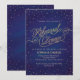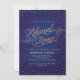 Efeito brilhante da brilha do ouro estrelas de bolinhas brilham em nuvens de confete contra um fundo azul e violeta do céu com aquarela neste convite de janto de ensaio, com um script de efeito de brilho dourado, "Janto de ensaio". Perfeito para uma festa de janto chic rico! Arte original de Colleen Michele. Por favor, note-se que não existe um verdadeiro efeito de brilho de ouro ou de folha de ouro nas estrelas e no guião; não será utilizada qualquer brilho, folha de ouro ou tinta metálica neste convite.