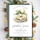 O nosso convite para o janto de Natal apresenta um elegante local de janto de férias e uma terra verde com o ditado "comer, beber e ser feliz" O convite é simples e elegante, com um fundo branco e um texto preto.