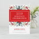 Morangos vermelhos e coroa de folhagem de inverno. Convite de janto personalizável para celebração de feriado.