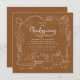 Reunir os entes queridos em estilo com este janto de Ação de Graças apressado com um fundo castanho quente, ilustrações de colheita desenhadas à mão e tipografia elegante. A design mostra abóboras, tortas, bolotas e folhas de outono - perfeito para convidar família e amigos para um banquete de férias aconchegante. Personalize com seus detalhes de evento para criar um charmoso e festivo convite para o janto de Ação de Graças, as festas de Ação de Amizade ou as recolhas de outono. Um design sazonal eterno que dá o tom para gratidão e celebração.