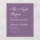 Um convite simples e minimalista para jantar o ensaio roxo. Tem apenas um texto branco sobre fundo roxo empoeirado. O título "A Noite Antes" é escrito em um roteiro caligráfico elegante. O texto fica alinhado.